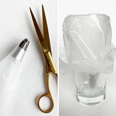 Tips! For å få smørkremen nedi en sprøytepose kan du sette den oppi et glass.